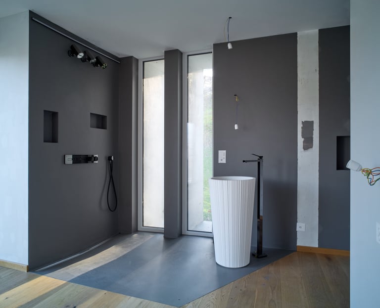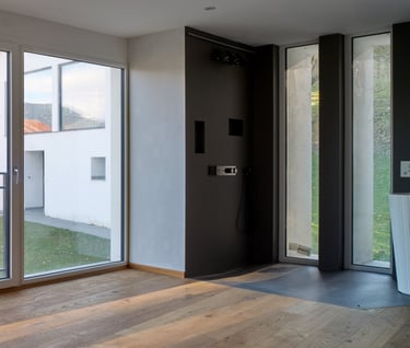 Cette chambre spacieuse de 40 m2, avec son parquet en chêne huilé, offre un cadre chaleureux et raffiné pour votre séjour. La salle de bain ouverte, réalisée en résine, arbore un style épuré et contemporain, ajoutant une touche de modernité à l'ensemble.