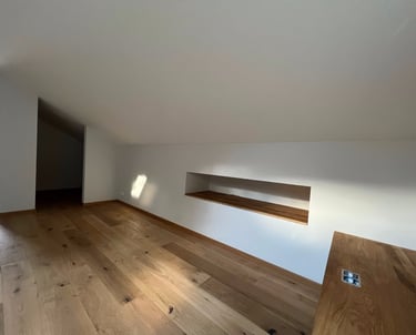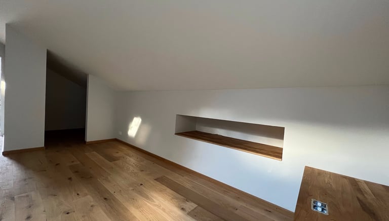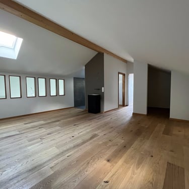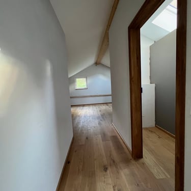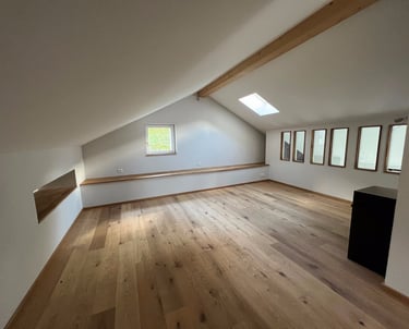 L'étage est entièrement recouvert d'un parquet en chêne huilé, ce qui ajoute une touche de chaleur et d'élégance à l'ensemble de l'espace. L'ensemble à été conçu pour offrir un studio privé et un solarium exclusif.